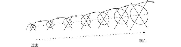 第二,教师学习的每一个环节都不是“一去不回头”,而往往是不断来回“拉锯”的过程(如图 1中的双箭头所示)。比如,内化和转变阶段中总是新旧观念的反复交锋和相互作用的过程;外化阶段总是实践模型不断地在外化中调整的过程;习俗化阶段则是个体知识与集体知识不断“互哺”的过程。第三,教师学习的过程是连续的。这里的“连续”有三个方面的含义:其一,在教师学习活动中,这些环节是连续的,尽管各个环节上会有反复,但是每个环节之后都需要继续进入新的环节;其二,教师学习在某个时间段内(如集体做一个小课题,或者试行某个实践模型时),会不断地以螺旋上升的形式重复上述学习过程(如图 2);其三,教师长期学习和发展的过程可视为以上几个环节的连续体。因此,图 2既可以用于描绘教师个体在某个时间段内的学习过程,也可以描绘教师个体在整个教学生涯中的成长历程。