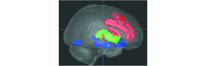 如图 1所示,红(执行注意)蓝(社会情绪感知)绿(贯通两者)三色共同构成了社会情绪处理系统(ventral social-affective processing system, VSAPS)区域(Aysenil Belger et al, 2011)。