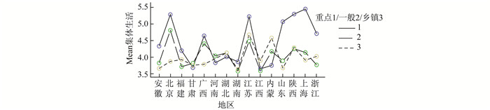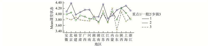 看来,具有示范作用的重点学校有两类:一类现代文化较强,如北京、上海、浙江、山东的重点学校(图 8); 另一类传统文化较强。如陕西,传统文化浓郁,尊师重教、百姓生活丰富。传统文化积淀了良好师生关系的温床,教师在这样的氛围中容易体验职业价值感,促进工作责任感和动力。