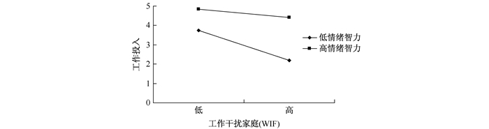 图 2 WIF与工作投入:情绪智力的调节作用 |