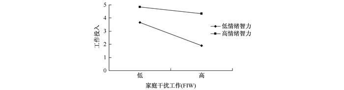 图 3 FIW与工作投入:情绪智力的调节作用 |