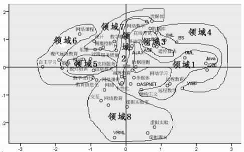 采用聚类分析、多维尺度分析等多元统计分析方法,以教育领域有代表性的文章、词汇、作者或者刊物作为分析对象,将它们间错综复杂的共引网状关系简化为数目相对较少的若干类群之间的关系,并直观地表示出来,使分析对象之间相互关系的格局清晰可辨(陈定权,2005)。采用共被引分析法可以发现教育研究的领域分布、权威期刊、权威作者以及热点词汇构成。