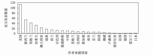 图 1 近十年课程研究国家分布的条形图 |