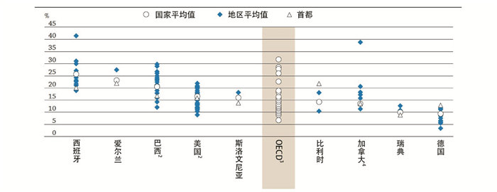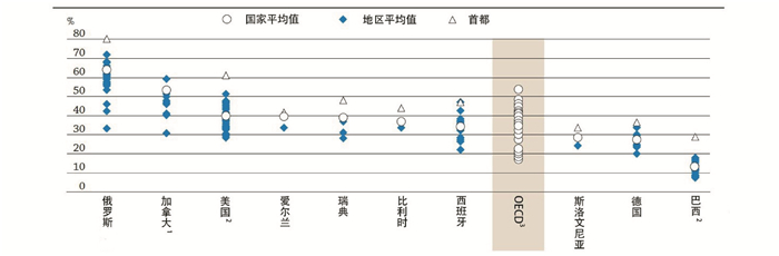 在解读数据结果时,读者应考虑到国家内部实体单位的人口规模可能会存在很大差异。例如,加拿大努纳武特 (Nunavut) 地区的人口数量为38585人,而安大略省的人口数量则高达1.37千万人 (OECD,2016)。