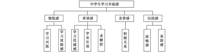 一是视学习过程为具体生活满意度领域,将学习幸福感表达为学生在学习过程中的幸福或积极体验、对学习成绩的满意或成就感。陈洪岩 (2007)、甘雄等人 (2010)认为,中学生学习幸福感是中学生依据自己设定的标准对其特定的学习过程所做出的整体评价,是学生在学习过程前、学习过程中和学习过程后所体验到的愉悦感、满足感和成就感,包括认知成分和情感成分两个方面。认知方面既包括学生对自己学习的整体满意度,也包括对自己学习中某些具体方面的满意度,如学习目标、学习方法、学习努力程度等;情感方面则包括积极情感和消极情感,前者包括快乐、振奋、欣喜、自豪、满足等,后者包括厌烦、压抑、羞愧、悲伤、焦虑、担忧等。余涵 (2013)认为,学习主观幸福感是主观幸福感在学习过程这一具体领域的体现,高中生学习主观幸福感包括学习成绩、学习积极体验、学习价值和学习消极体验四大因素,其中学习成绩和学习价值可归为学习认知,学习积极体验和消极体验可归为学习情感。