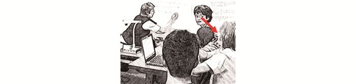 以上的分析基于具身的视角,探索了四位课堂互动参与者的“说服”与“被说服”的微观过程。从这种以一秒、一帧、一个动作为单位的分析中,我们可以看到身与身、身体与物件的互动是如何影响课堂讨论的进程,进而影响学生的学习过程的。倘若没有视频,我们就无法看到这些关键的互动。