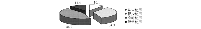 从图 2可以看出,我国中小学教师教育信息技术的使用频率总体偏低,经常使用教育信息技术的教师只占11.4%,44.2%的教师有时使用教育信息技术,44.4%的教师很少使用或从未用过信息技术。