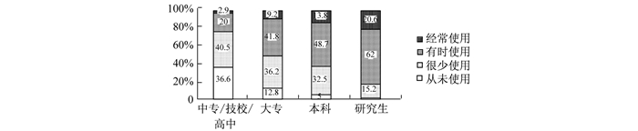 图 5 不同学历教师教育信息技术整体使用情况(%) |