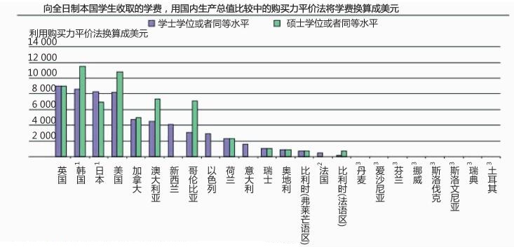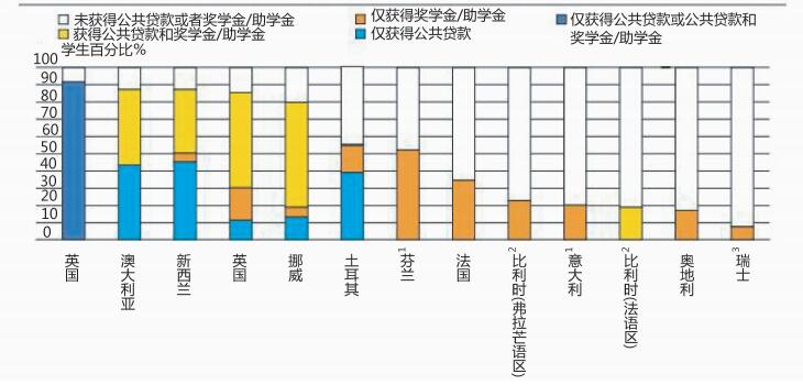 经合组织国家的学费构成和学生支持体系差异很大经合组织国家高等教育成本的构成有很大的差异,它们为学生提供的财政支持也是如此。例如,在更偏向于累进税制的国家,如丹麦、芬兰、冰岛、挪威和瑞典等,学生缴纳的学费较少或不缴学费,并能够获得高额的公共补贴,但面临较高的收入税率。相较而言,澳大利亚、加拿大、新西兰、英国和美国的学费要高很多,尽管这些国家的学生也可以获得较大的财政支持。日本和韩国在改革之前,学生支付相对较高的学费,并且获得公共补贴的机会也比较少。同时,在奥地利、比利时、法国、意大利和瑞士等国家,学生接受高等教育只需缴纳很少或不用缴纳学费,但是他们获得财政资助的机会也有限。